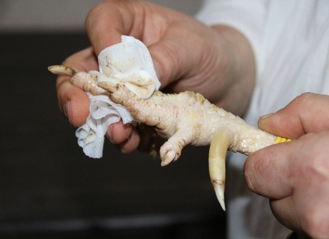 - Ebaloomulikult arenenud kannused. Kannuste asetus ja kasvusuund on vale ja tihti võivad pikad kannused valesti asetsedes kasvada ka linnu sääreluusse.