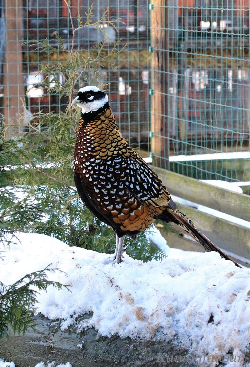 Kuningfaasan (Syrmaticus reevisii) elutseb Kirde-Hiinas, Szetshuanis. Kukk 210 cm, kaal 1530g. Kana 75 cm, kaal 950g.