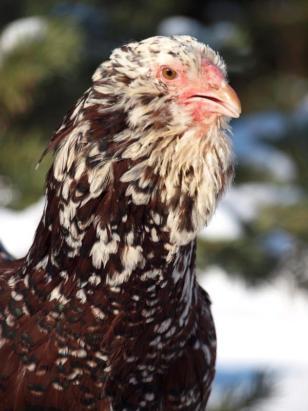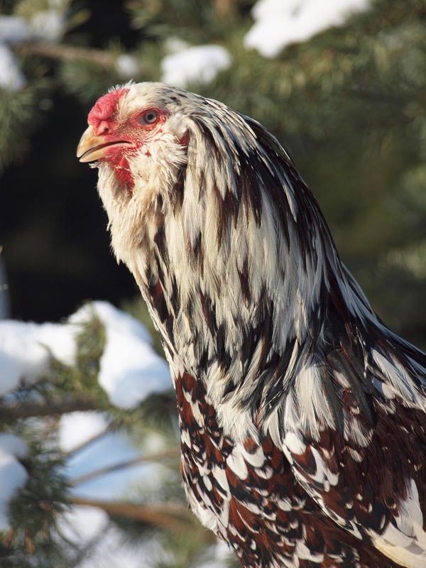 Pea keskmise suurusega, kael lai. Arenenud kulmud, lühike kaardus nokk. Kukkedel on väike lame hari, millel kasvavad väikesed suled. Kana hari on nõrgalt arenenud, seega taluvad nad talvel hästi külma. Noka all on lopsakas põskhabe.