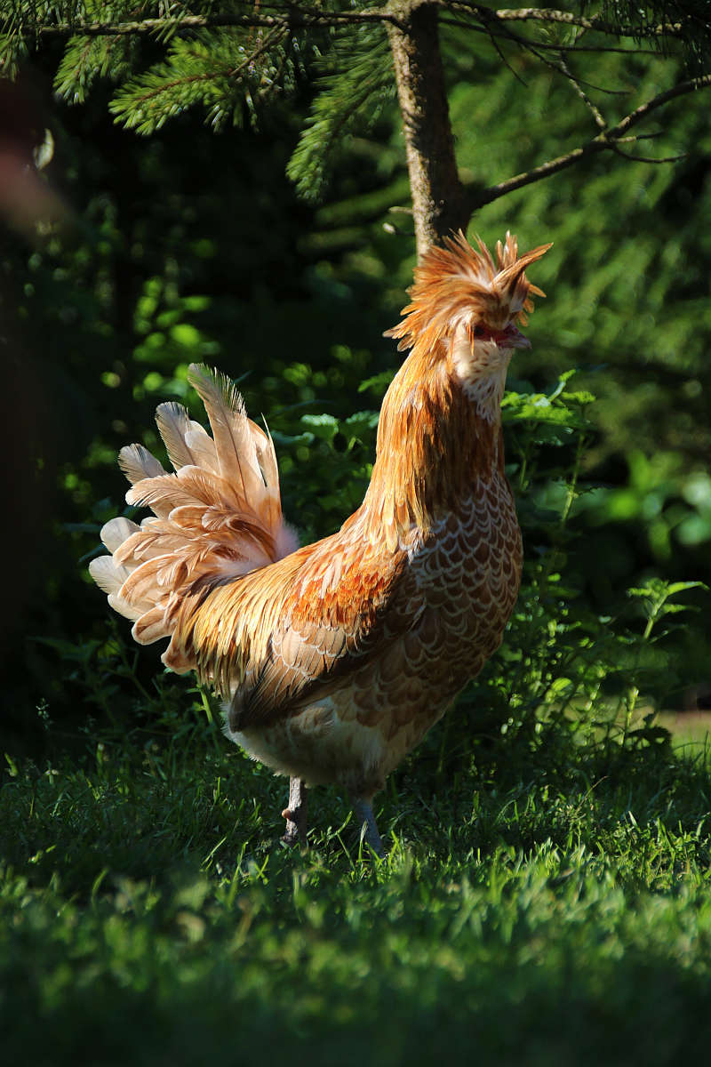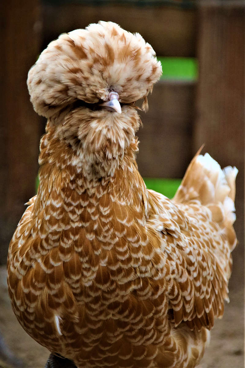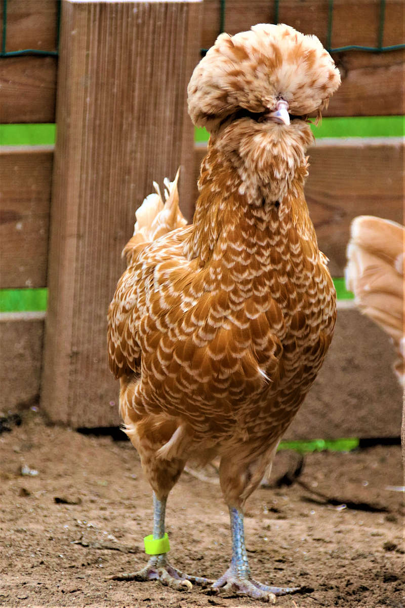 Tunnused: kukkede peas asetsev suletutt on lopsakam ja kanade omaga võrreldes veidi sassis. Nii isas- kui emaslindudel on suur habemetutt. Hari ja lokutid puuduvad või on väga väikesed. Kõrvalapid on täielikult suletuti varjus. Rahulikud ja usaldavad linnud.